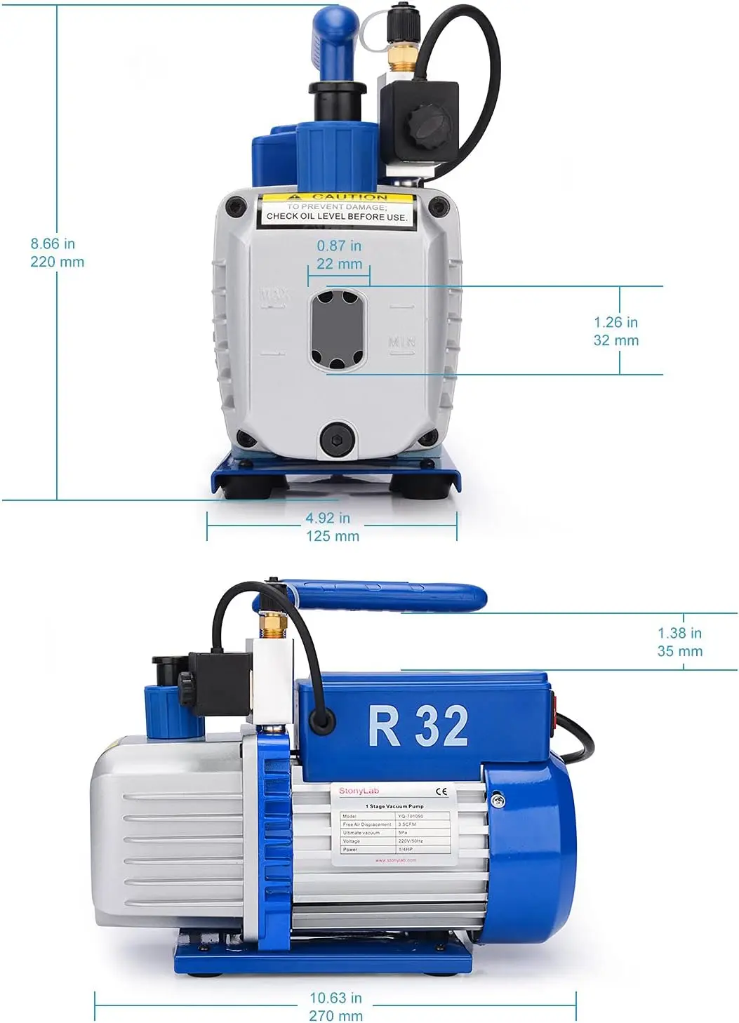 Rendimiento de vacío confiable: La bomba de vacío de paletas rotativas de una etapa stonyLab proporciona una fuente de vacío confiable para filtración al vacío, desecación al vacío, extracción en fase sólida y más; también se puede usar con evaporador rotativo.